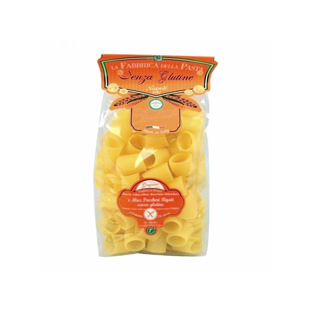 Bezlepkové mezzi paccheri rigati od Fabbrica della Pasta di Gragnano jsou těstoviny vhodné pro celiaky, ale také pro ty, kteří chtějí mít pestrou a vyváženou stravu, a přitom si dopřát bezlepkové těstoviny vysoké italské kvality.