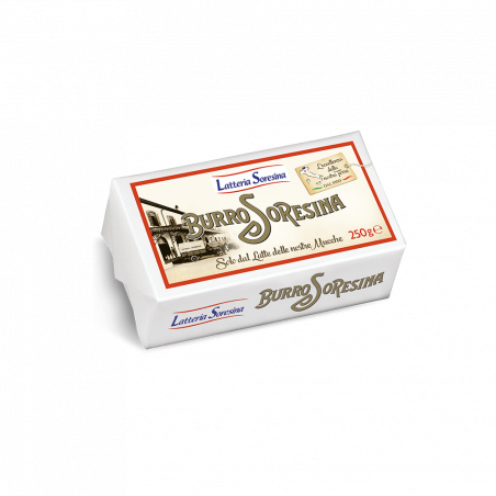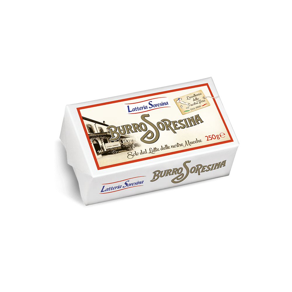 Pokud hledáte pravé 100% italské máslo obsahující mléčné fermenty, tady je máslo Soresina. Je vyrobeno pouze ze 100% italských surovin a je klasickou kuchyňskou pomůckou pro nesčetné množství pokrmů, které charakterizují vaši chutnou kuchyni.