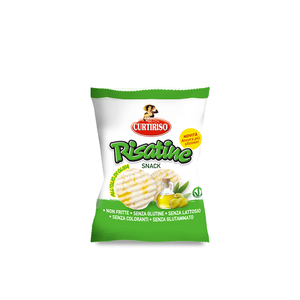 Curtiriso Risatine jsou malé a velmi chutné snacky, které nejsou smažené. Jsou to lahodné a křupavé pochoutky, které vám pomohou zahnat hlad kdykoli během dne. Kromě toho, že jsou velmi chutné, naše Risatine s olivovým olejem jsou vyrobeny z několika pečlivě vybraných ingrediencí, aby vám poskytly lahodný snack, který je: nesmažený, bez lepku, bez laktózy, bez barviv, bez glutamátu, veganský ok.