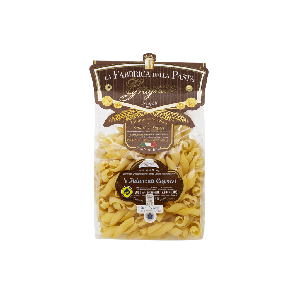 Sušené těstoviny ze semolinové mouky "Fidanzati Capresi" mají tvar, který je velmi podobný "Fusilli". Jméno znamená "milenci Capri" a dokonale připomíná starou tradici Neapolských skvělých těstovin. Jsou dokonalé s jakoukoliv omáčkou, jednoduchou nebo na bázi masa, ryb či zeleniny.