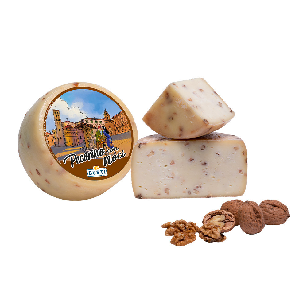 Italské ovčí mléko pasterizované, ořechy (3 %), sůl, syřidlo, mléčné fermenty, povrch sýru ošetřen konzervanty: E235, E202. Tuk v sušině minimálně (32 %).